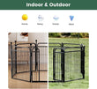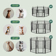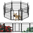 A Win-Win Solution: The Gardner Pet Dog Playpen is different from a traditional enclosure cage or kennel, our dog pen provides a spacious semi-open activity area specifically for your lovely dog. Your dog can run and play happily and freely in this dog exercise play.Meanwhile, you could unlock your freedom without worry about your pets. Safe & Sturdy: The stakes are designed with rounded ball tops to protect the dog's claws from injury. Smooth surface without burrs, the stakes are more easily inserted into the ground for more stability and rigidity. Won't collapse when the dog leans against them. But pleae remember to take off the leash before you put the dog in to avoid injuries caused by your dog hanging from the stake while jumping. Threshold-Free Gate With Gravity Lock: Adopts new type door lock design - one-touch switch, much safer and more convenient. The automatic gravity-actioned locking mechanism will ensure you can open and close the door smoothly and reduces the chance of dogs unlocking by themselves. Threshold-free gate allows easy walk-in cleaning for humans and worry-free running for dogs. Easy Assemble & DIY Shapes: The panels could be assembled in just a few minutes without toolsdue to the rod-connected design. You could DIY the dog pen to any shape you need like square, rectangle, round, etc. Our pet play pen could be disassembled into a flat and compact size for space saving and easy carrying, perfect for travel, RV camping or play in the yard. Anti-Rust Paint Finish: The Gardner Pet pet playpen features anti UV material, anti-rust, and waterproof, that will help protect extend its life. Smooth surface will be easy to clean.When used indoors, we recommend placing it on carpet to prevent the rods from scratching the floor, or please try our dog pee pad for the same purpose.100% satisfactory resolution in case of any issues.